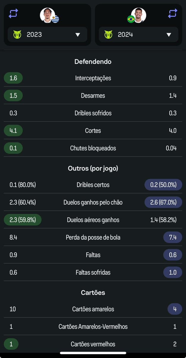 Com sua chegada ao Vasco da Gama, Maurício Lemos é a nova adição ao time principal nesta temporada. A seguir, uma comparação simples de sua performance em 2023 em relação aos nossos defensores, além do desempenho do JV em 2024.