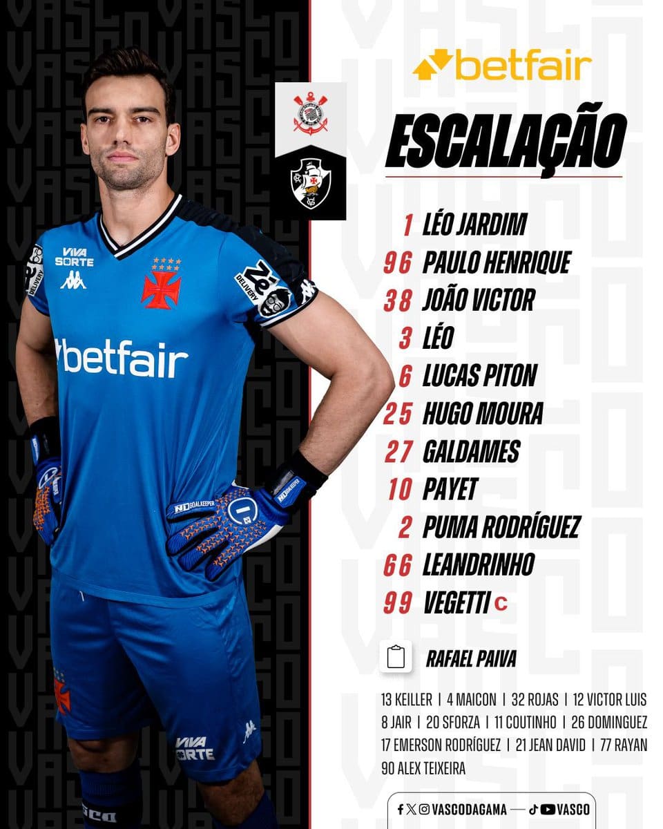 🎥📋 FIQUE POR DENTRO DA ESCALAÇÃO DO VASCO DA GAMA PARA O CLÁSSICO CONTRA O CORINTHIANS! 💢