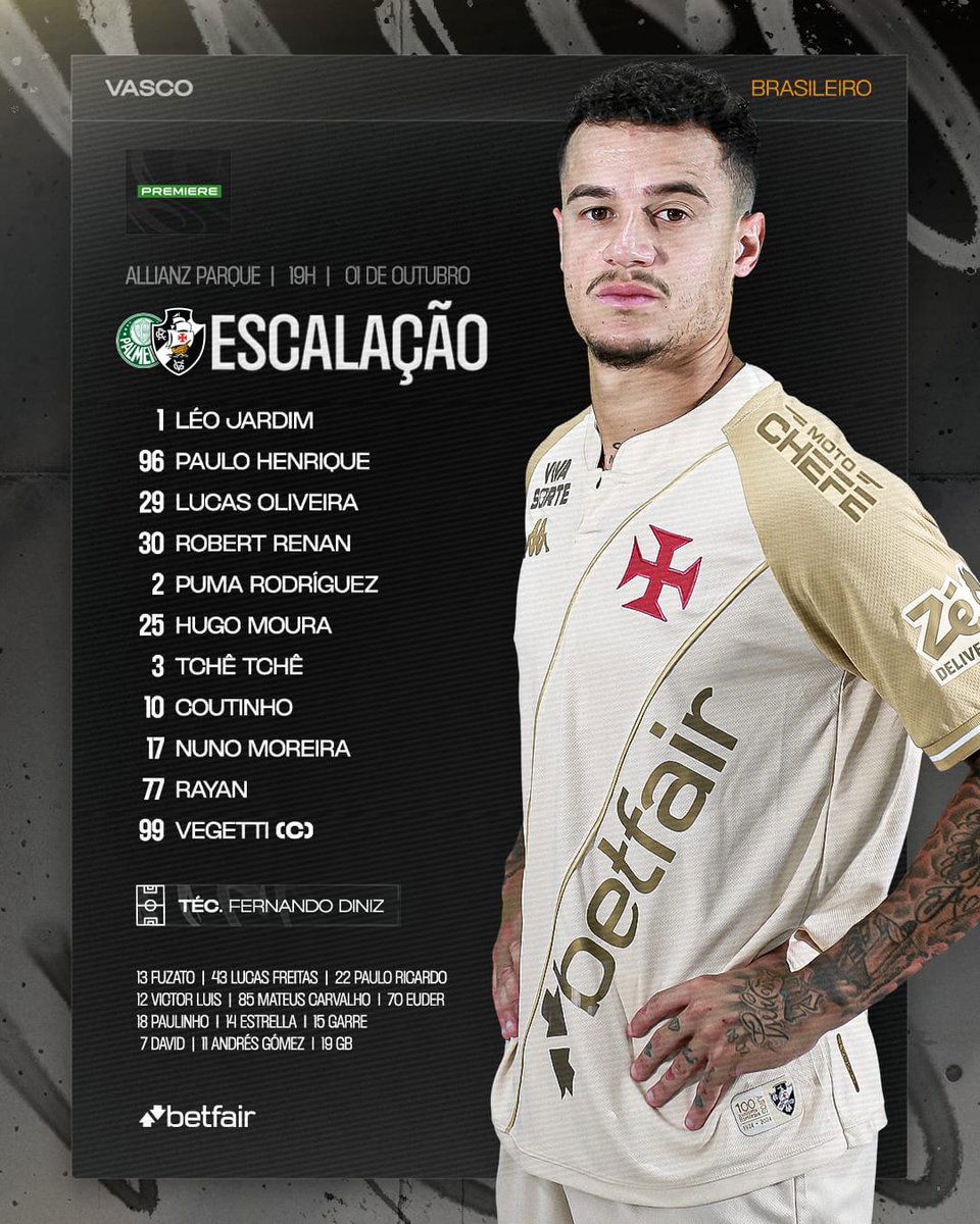 O 𝐕𝐚𝐬𝐜𝐨 𝐝𝐚 𝐆𝐚𝐦𝐚 está pronto para o confronto contra o Palmeiras, que ocorrerá fora de casa, pelo Campeonato Brasileiro! 📋💢