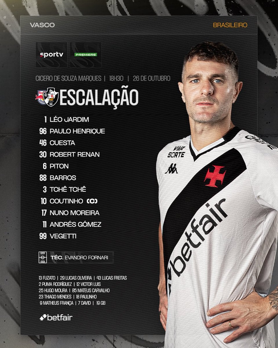 𝗧𝗶𝘁𝘂𝗹𝗮𝗿𝗲𝘀 & 𝘀𝘂𝗽𝗹𝗲𝗻𝘁𝗲𝘀 do Vasco na partida contra o RB Bragantino 📋💢