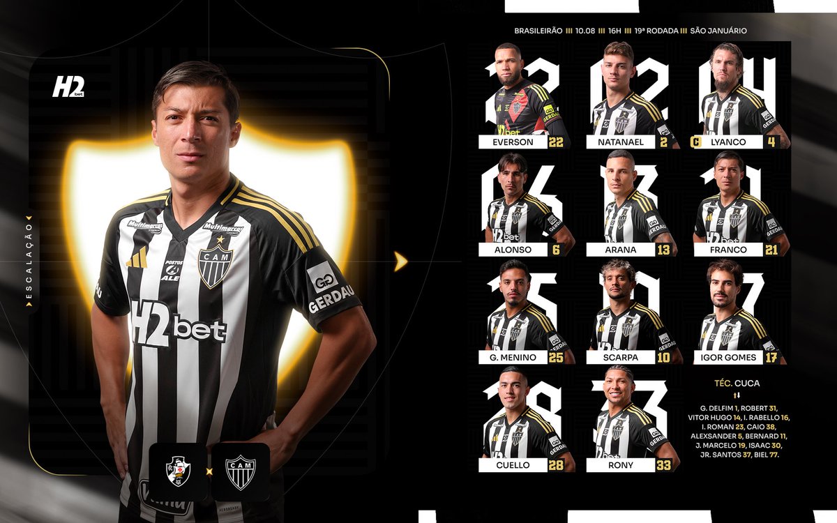 📋 GALO ESCALADO! Confira nossa escalação para o confronto contra o Vasco, no Estádio de São Januário, pela 19ª rodada do Campeonato Brasileiro!