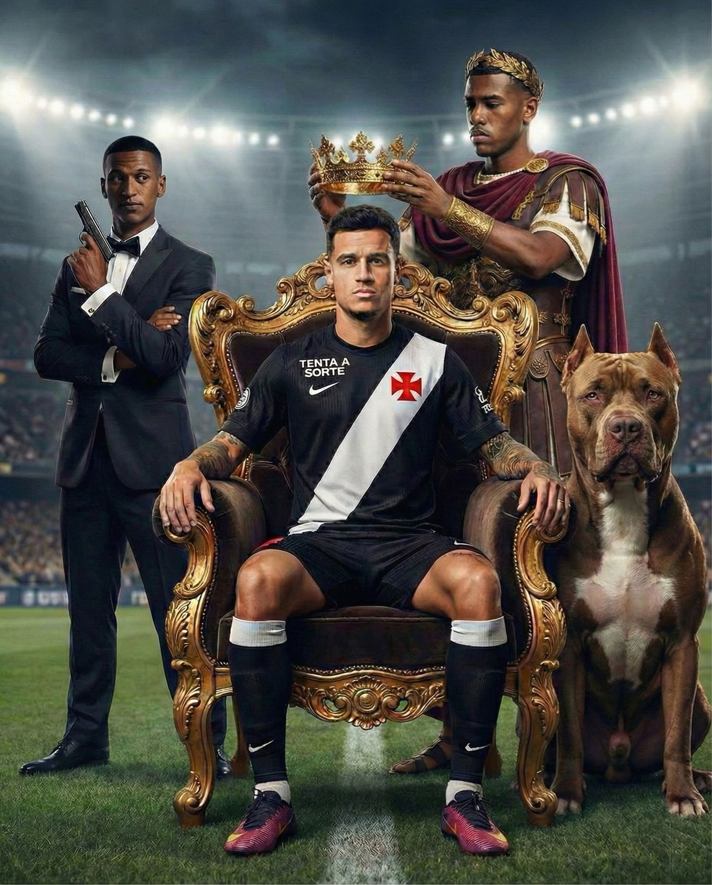 A imagem sugere uma possível transição de liderança no Vasco da Gama, destacando figuras importantes do clube.