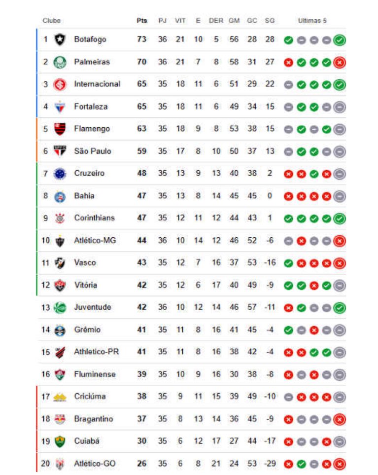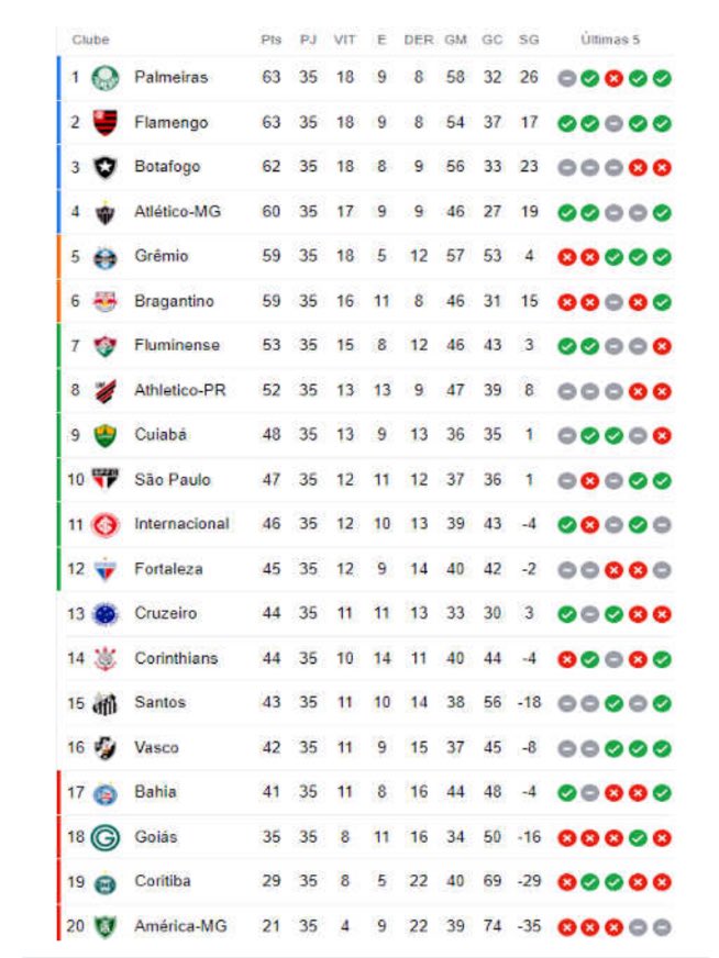 👀 Confira as pontuações da 35ª rodada do Campeonato Brasileiro nas temporadas 2023-2024.
