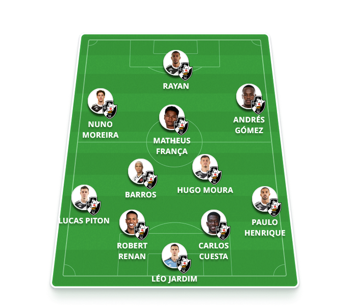 Provável escalação: Léo Jardim, Paulo Henrique, Carlos Cuesta, Robert Renan, Lucas Piton, Hugo Moura, Barros, Matheus França (David ou Tchê Tchê), Nuno Moreira, Andrés Gómez e Rayan.