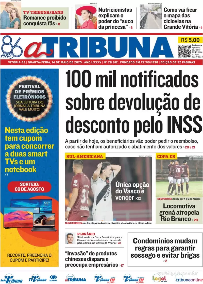 Na sua estreia pelo comando do Vasco, o treinador Fernando Diniz viu a equipe perder para o Lanús por 1 a 0 na Copa Sul-Americana, na Argentina. Confira as capas dos jornais.