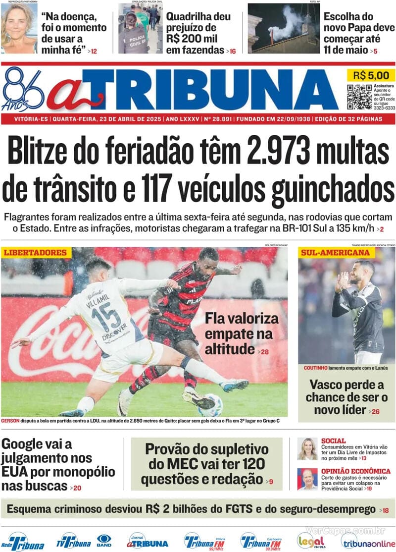Confira as manchetes dos jornais após Vasco 0 x 0 Lanús.