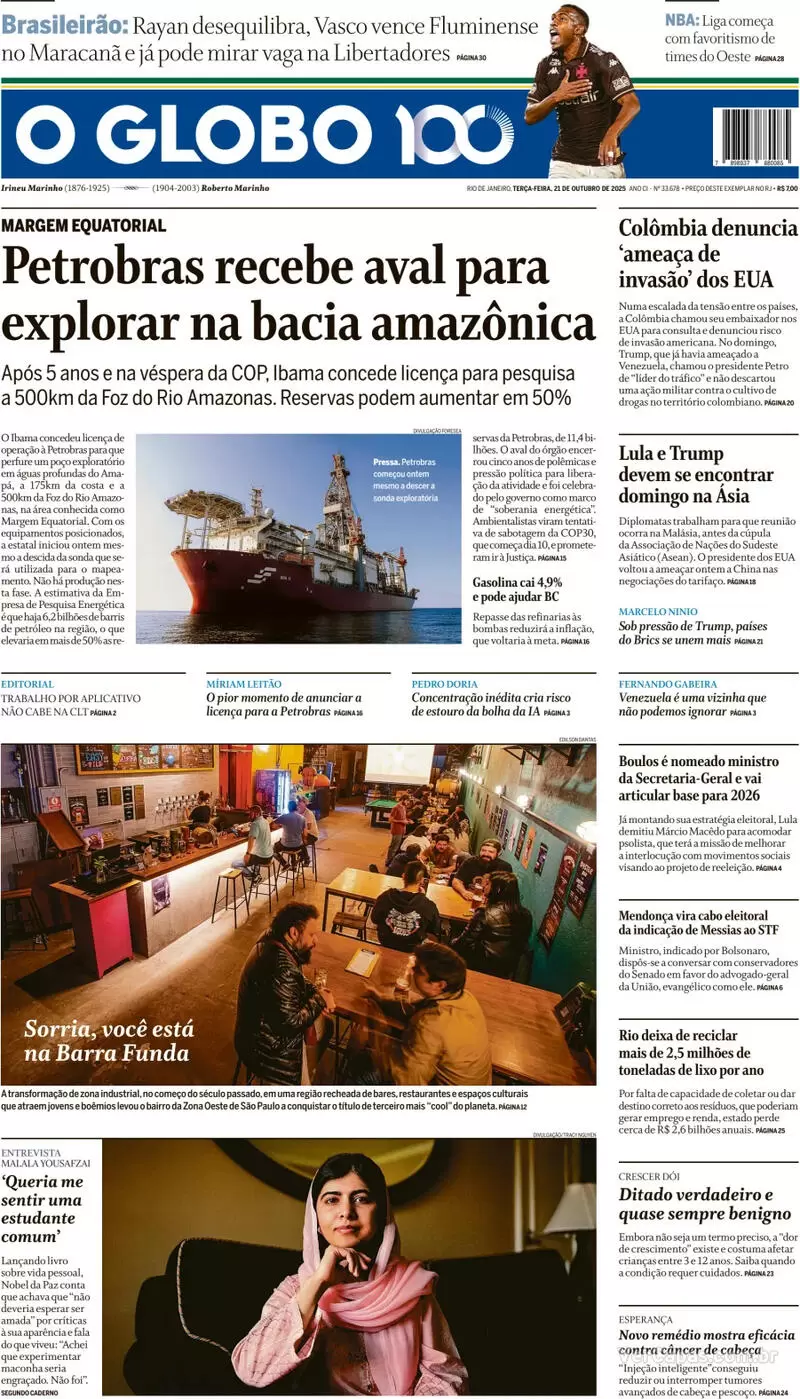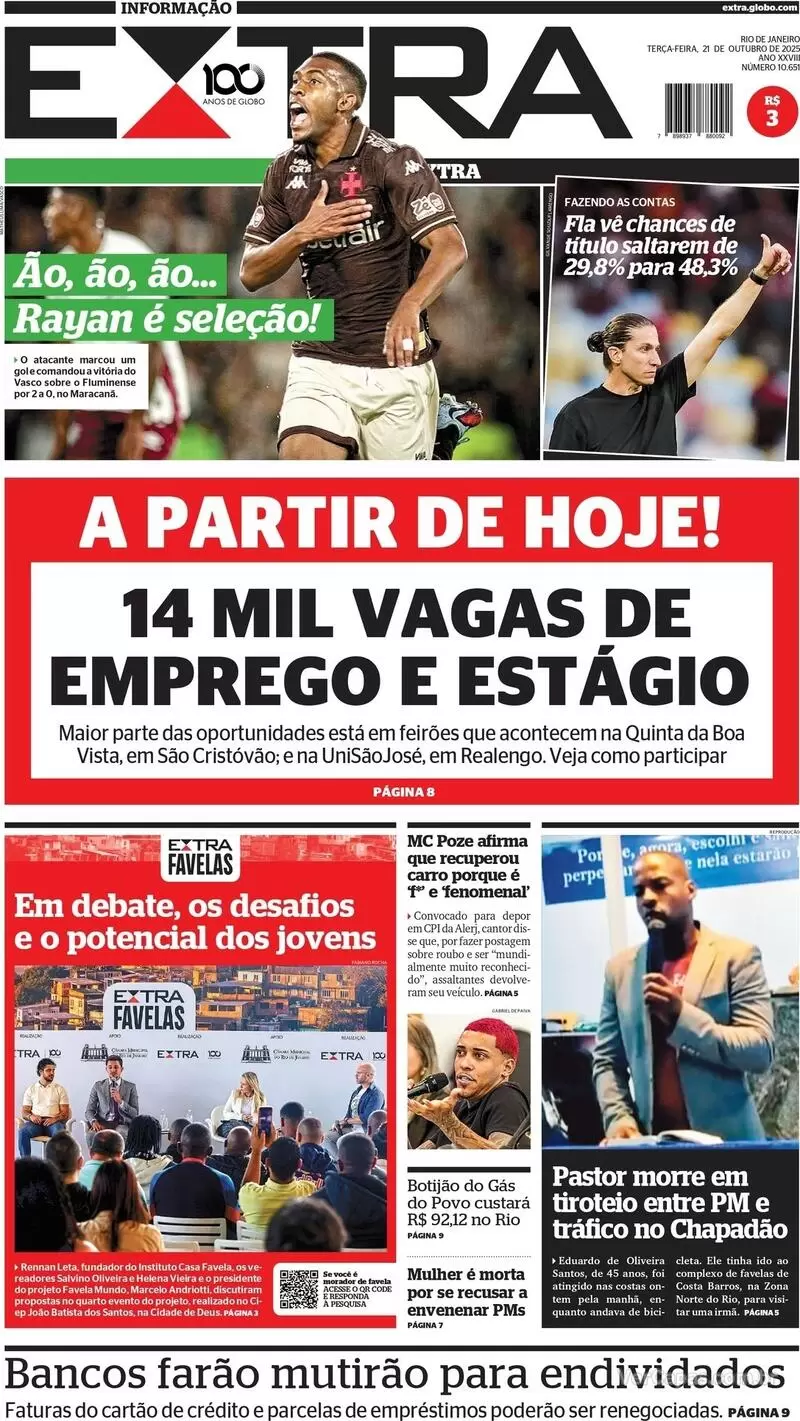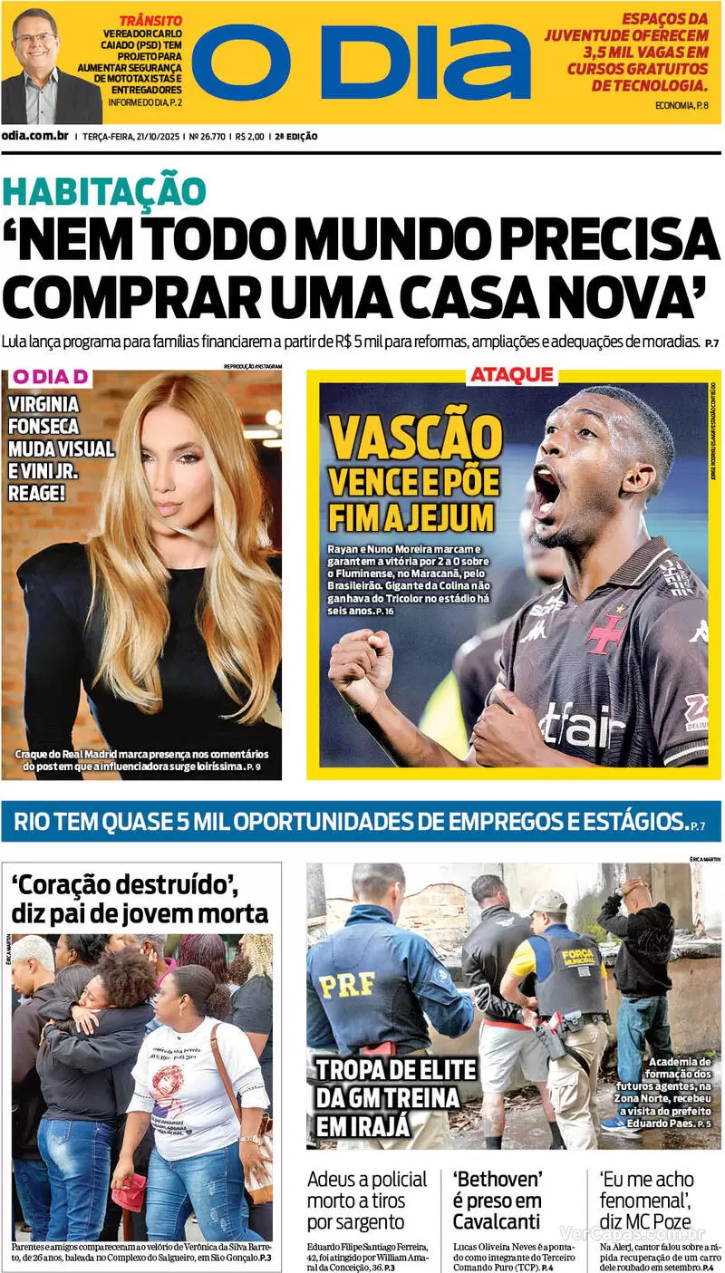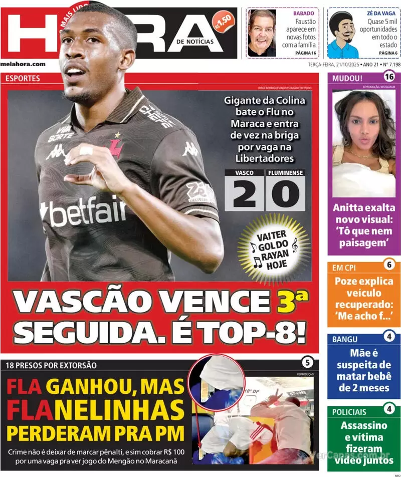 Pelo Campeonato Brasileiro, o Vasco garantiu uma vitória de 2 a 0 sobre o Fluminense no Maracanã. Confira as capas dos jornais:
