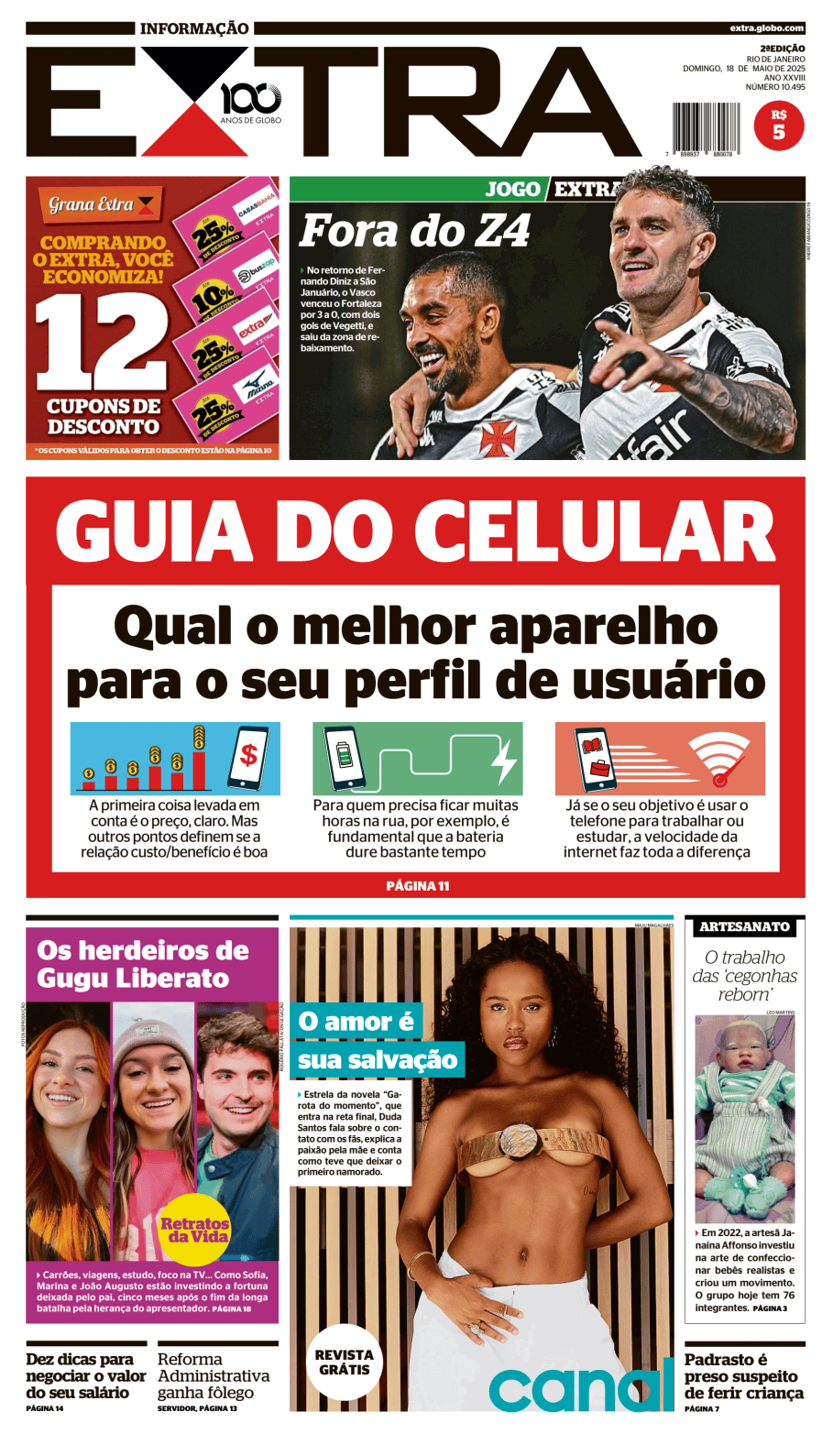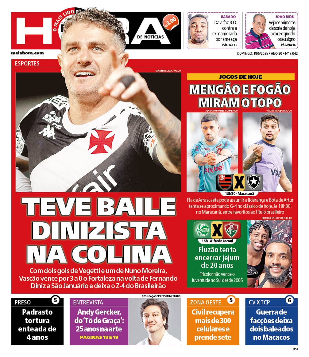 No Campeonato Brasileiro, o Vasco venceu o Fortaleza por 3 a 0 em São Januário, com gols de Nuno Moreira e dois de Vegetti. Confira as capas dos jornais.