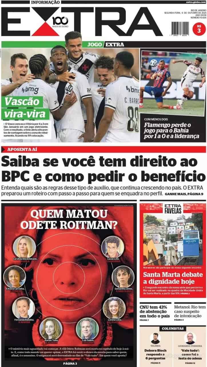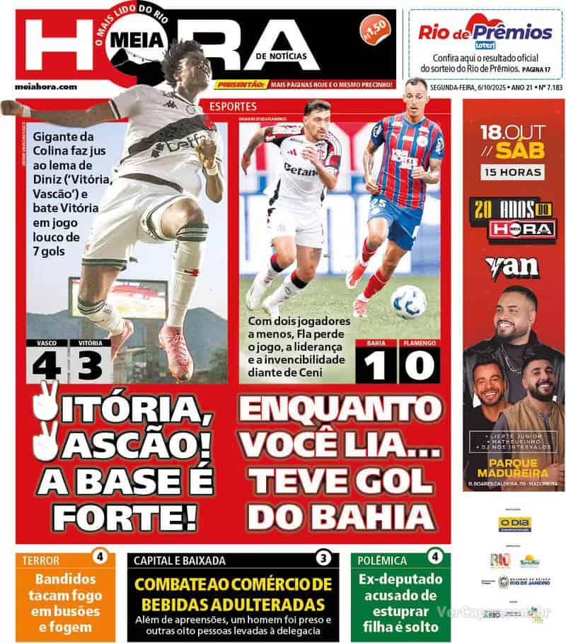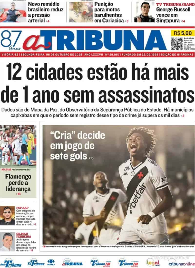 Pelo Campeonato Brasileiro, o Vasco conquistou uma emocionante vitória sobre o Vitória, marcando 4 a 3 em São Januário. Confira as capas dos jornais abaixo.