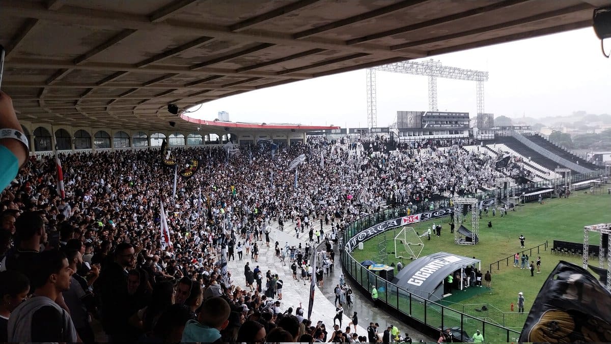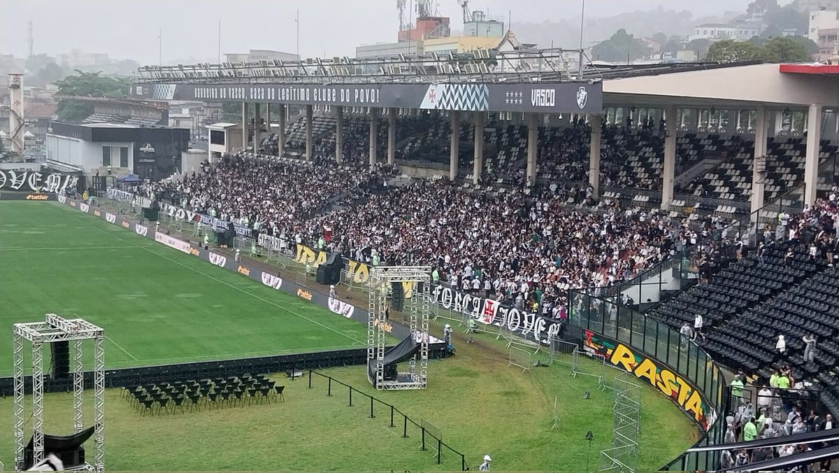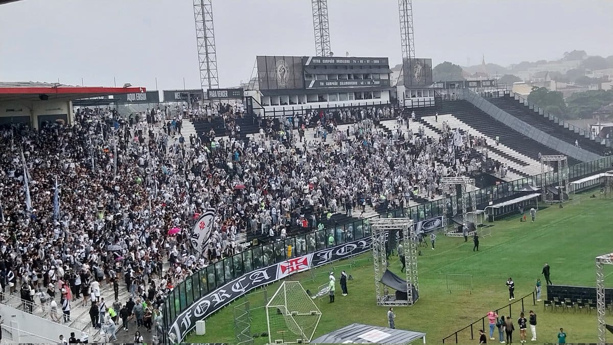 O Estádio de São Januário está lotado. Em breve começará a cerimônia de apresentação do jogador.