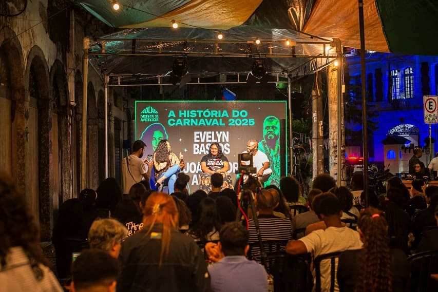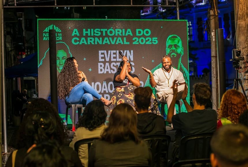 Quem esteve presente ontem no Candinho (@aquinasceuvasco) teve o privilégio de assistir a uma incrível aula com Evelyn Bastos (@evelynbastosoficial), a rainha de bateria da Mangueira, e João Vitor Araújo (@araujocarioca29rj), o carnavalesco campeão de 2025 da Beija-Flor (@beijafloroficial).