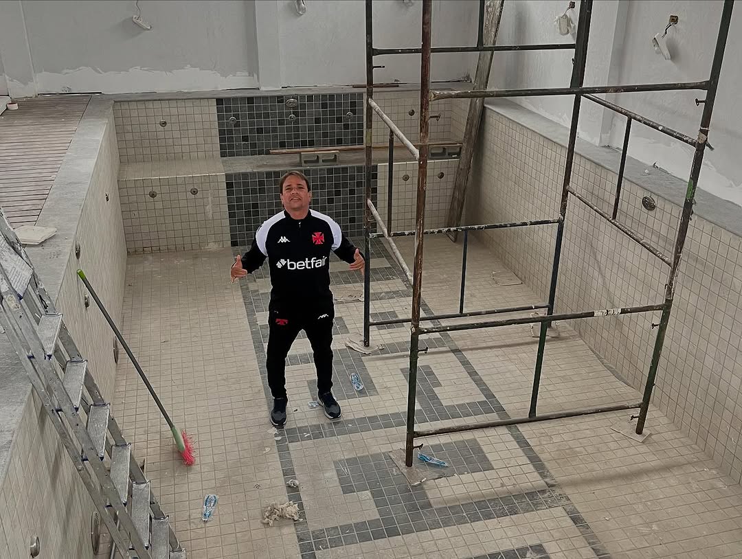 Estar aqui é uma grande felicidade! Hoje, tenho a oportunidade de participar ativamente da revitalização desse clube gigante 💢. As mudanças são visíveis e nosso centro de treinamento está se tornando bonito, funcional e moderno. Uma boa infraestrutura é fundamental para que os jogadores tenham condições ideais de atuação, e acredito firmemente que isso trará resultados positivos dentro de campo! Confira a área molhada do Desp Vasco! 💢🙏❤️
