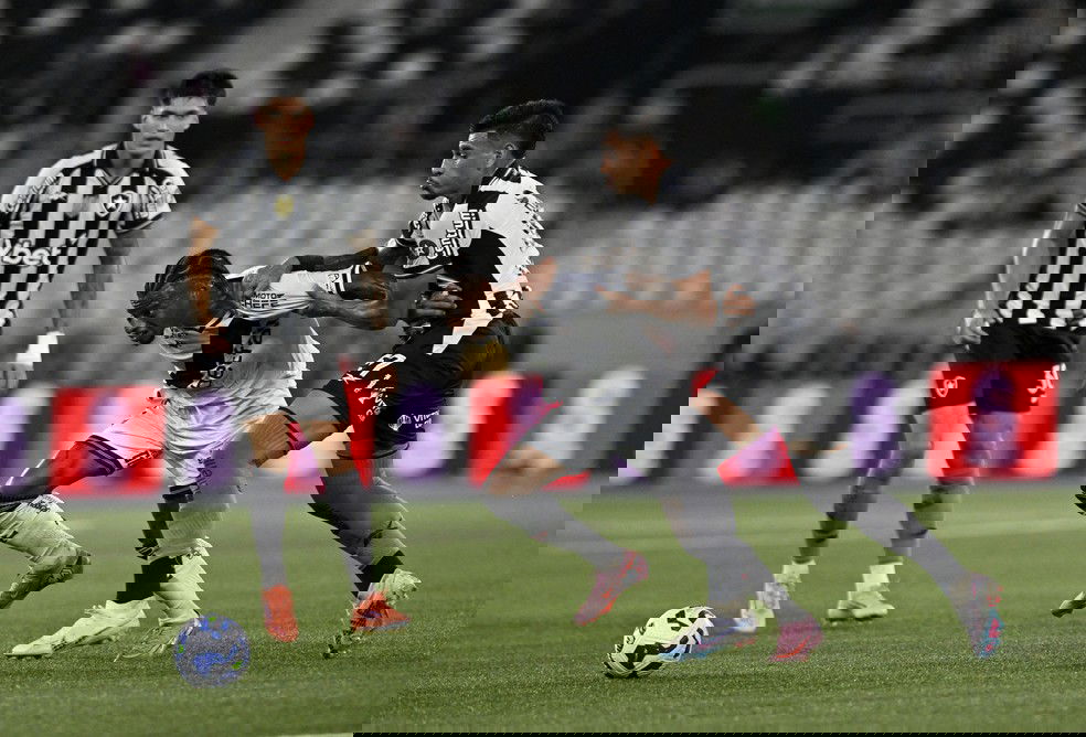 Vegetti disputa a bola em partida contra o Botafogo no Nilton Santos — Foto: André Durão