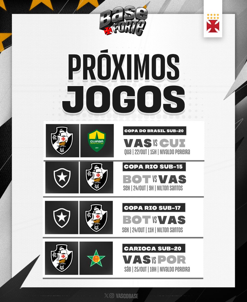 Próximos jogos do Vasco; destaque para partidas de futebol juvenil.