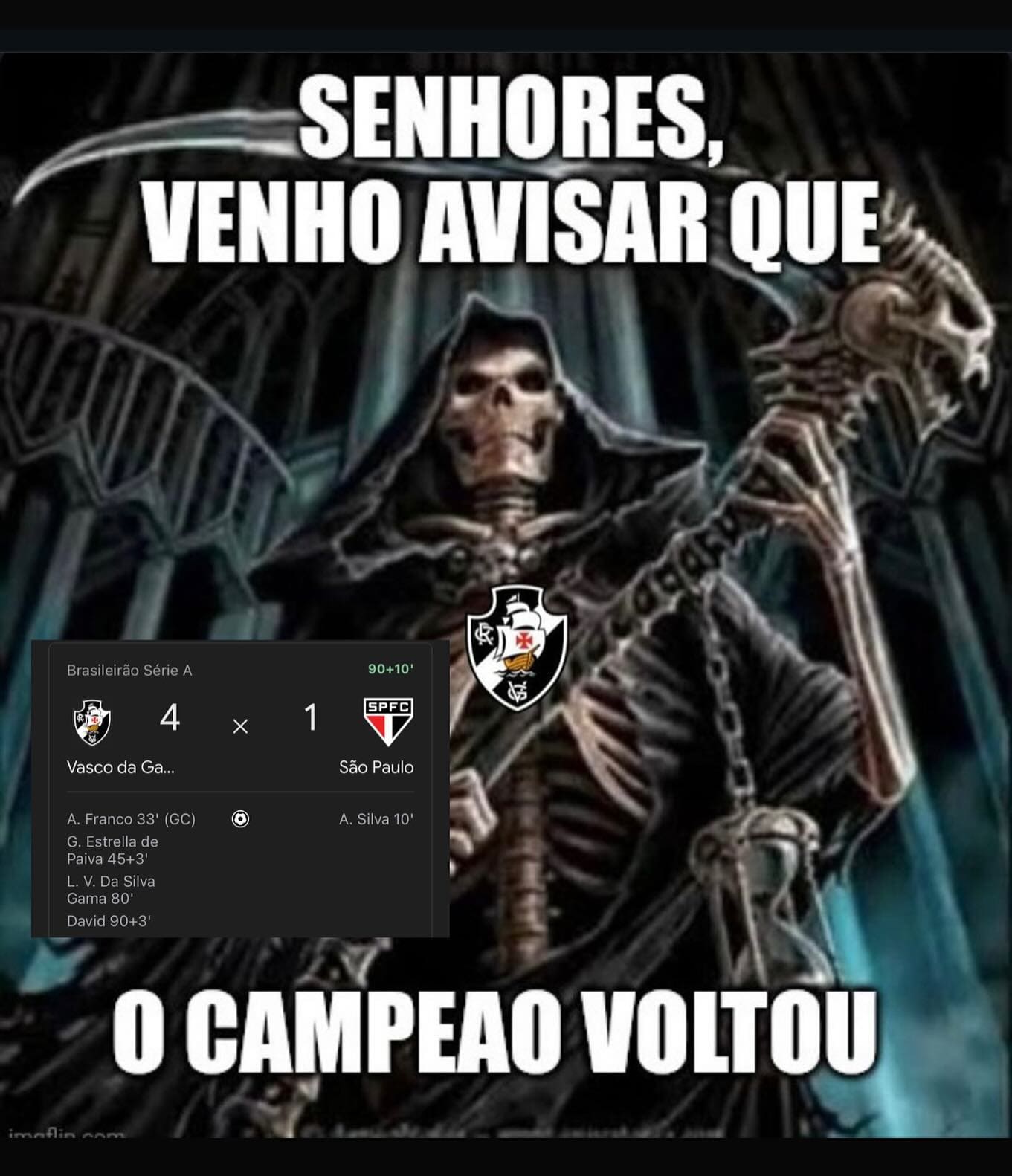 Pela disputa do Campeonato Brasileiro, o Vasco aplicou uma goleada de 4 a 1 no São Paulo, em partida realizada em São Januário. Os gols vascaínos foram marcados por Alan Franco (em lance contra), Estrella, Leandrinho e David.