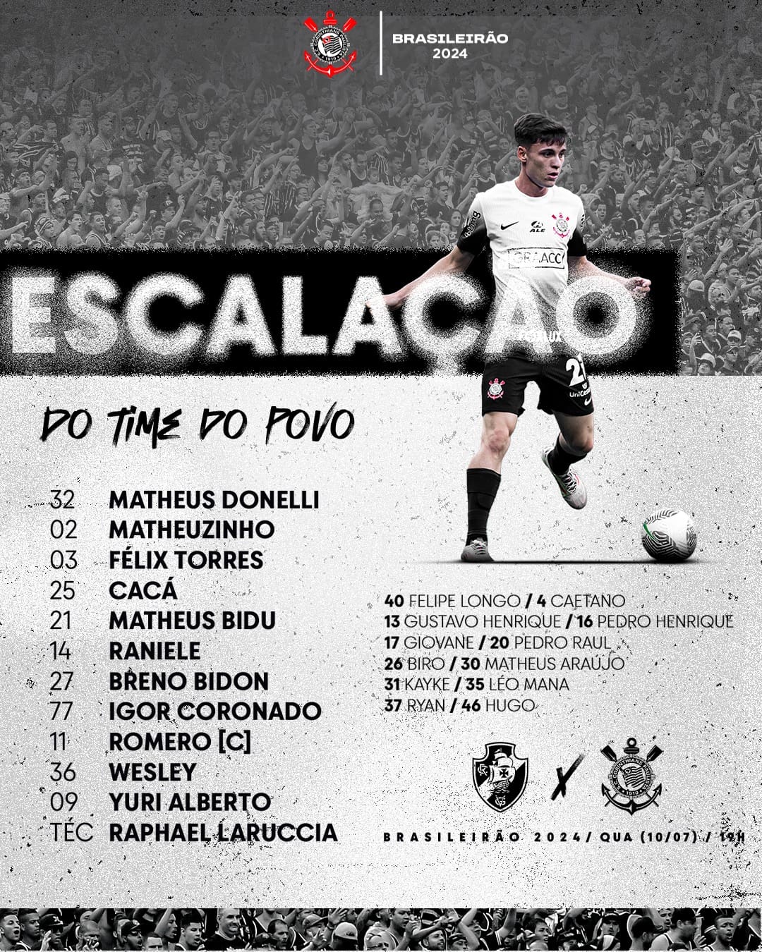 Time do Sport Club Corinthians Paulista confirmado para o embate! 📝