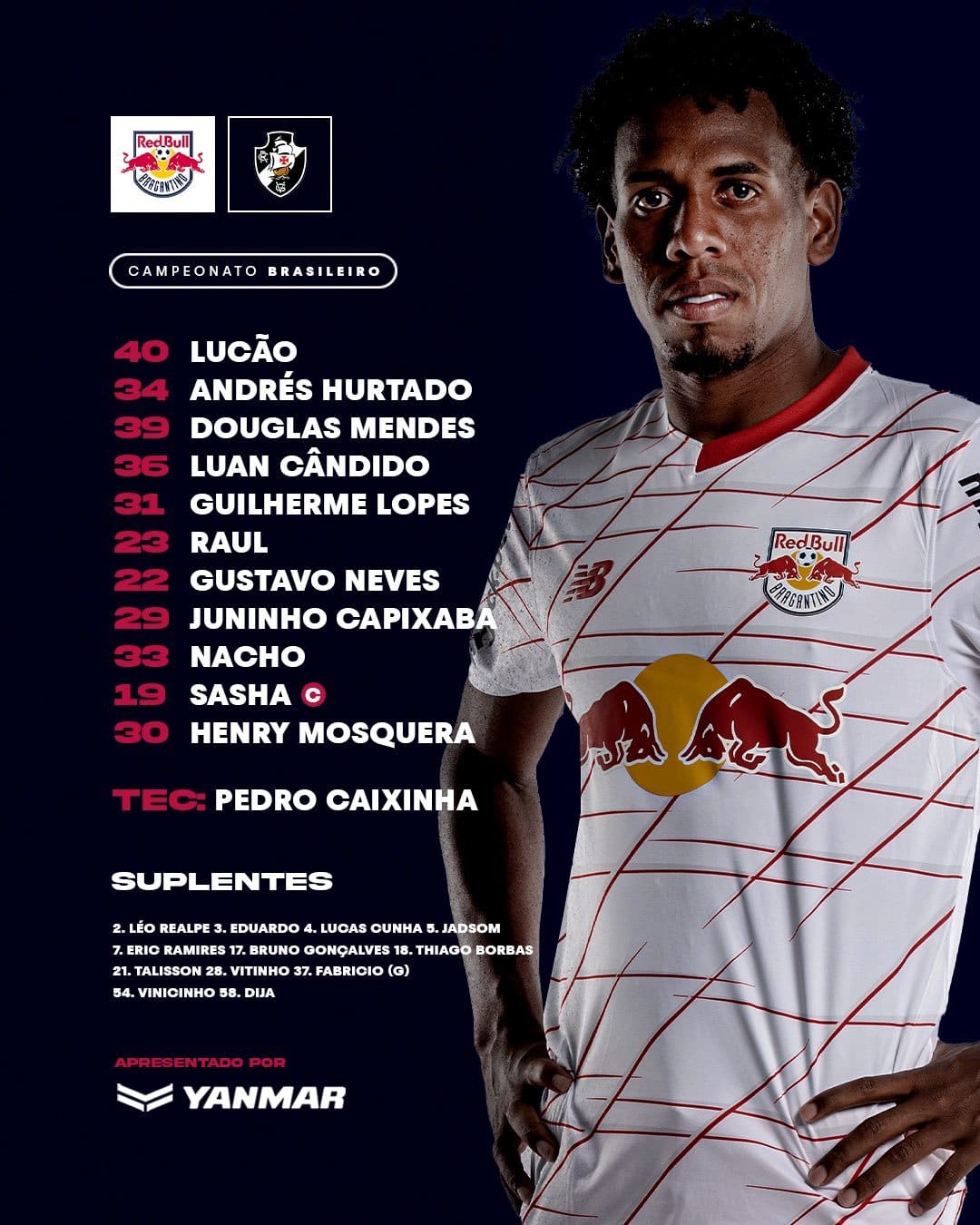 Lucão ganha a posição de titular no gol do Bragantino para a partida! divulgação/rb bragantino Informação fornecida por: X Scout Vasco
