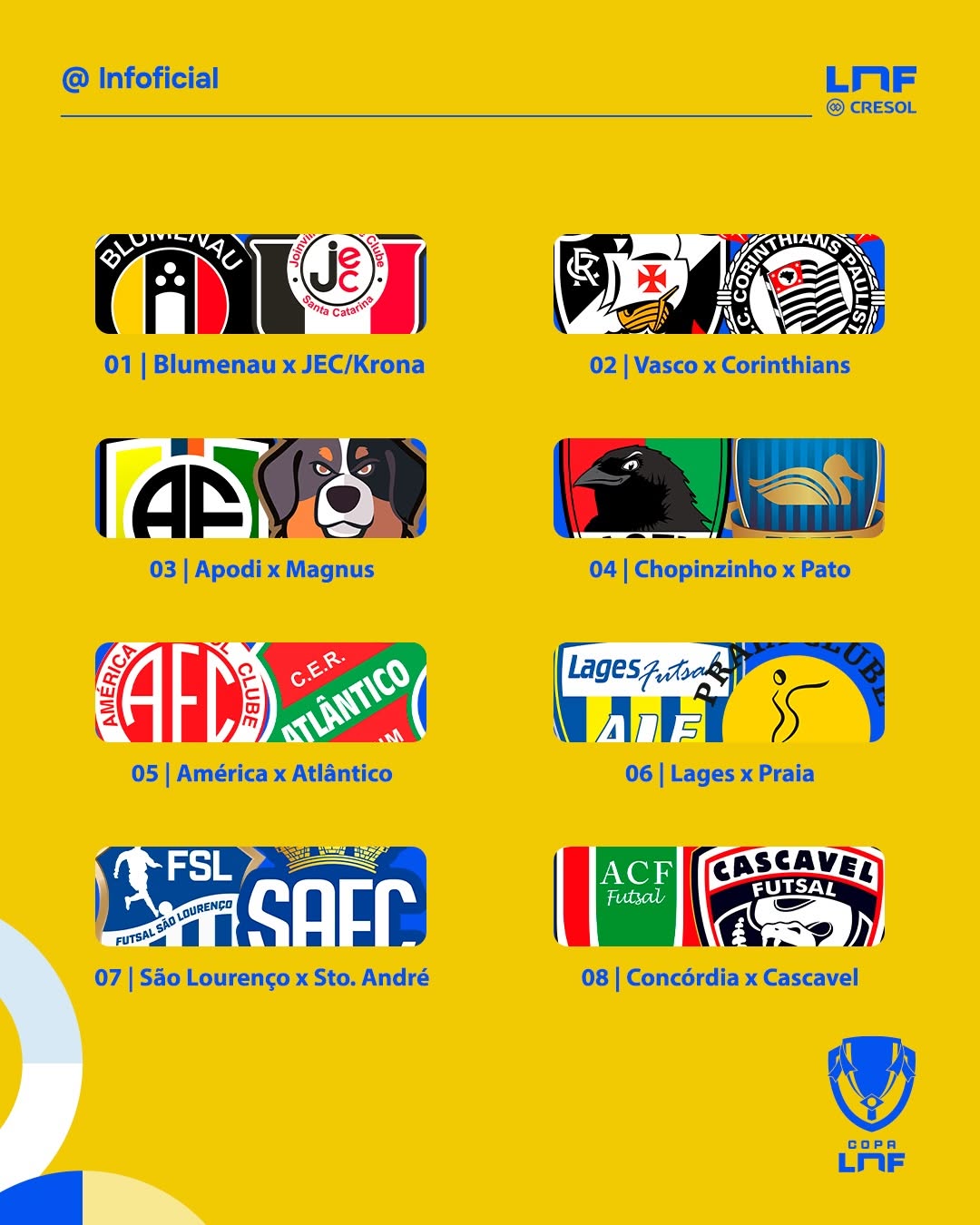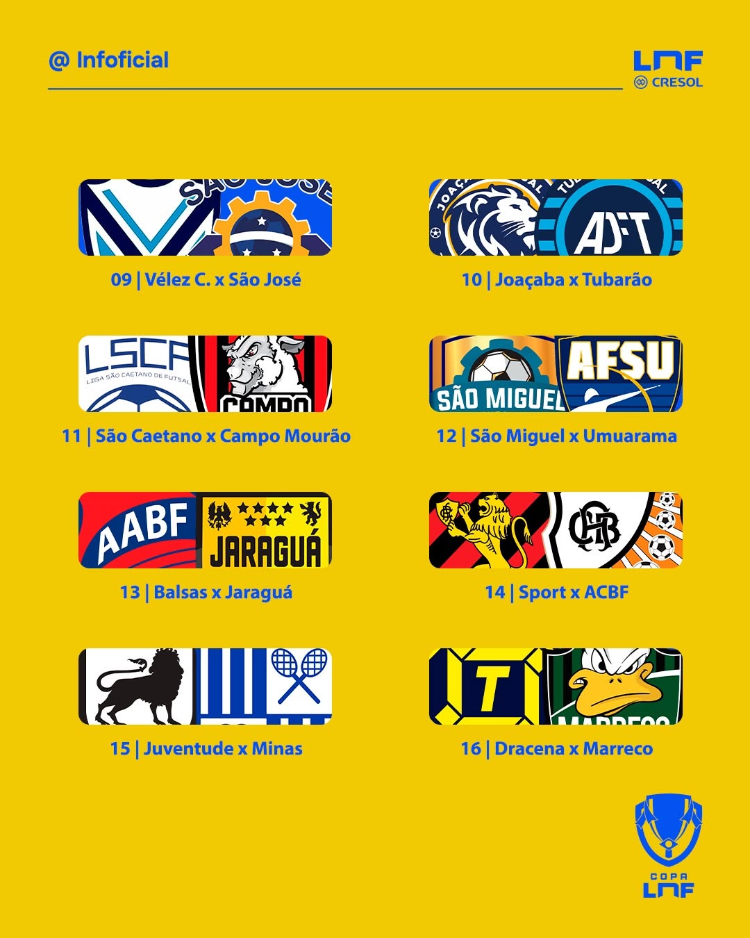 Os duelos da primeira fase da inédita Copa LNF foram estabelecidos, com as equipes da LNF Silver sendo as mandantes.