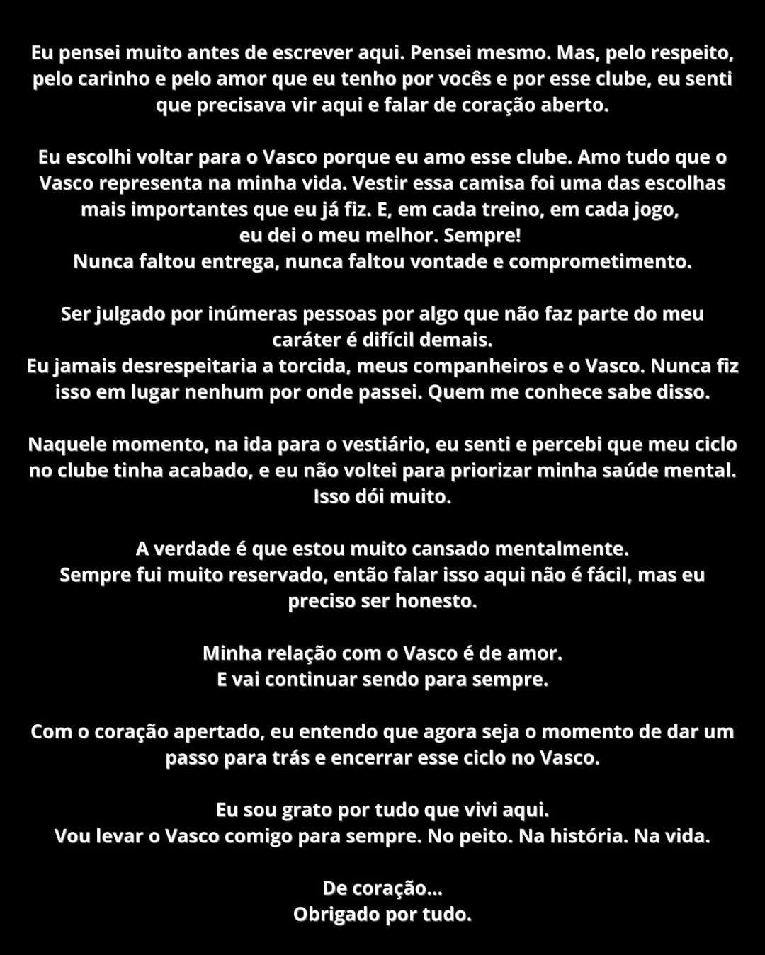 Coutinho confirmou sua saída do Vasco, encerrando seu ciclo no clube.