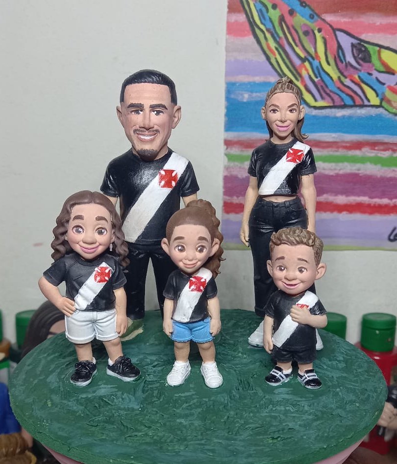 Quero destacar o incrível trabalho da minha mãe, que cria bonecos e topos de bolo, tanto em biscuit quanto em 3D. Ela realizou o sonho de presentear o jogador Philippe Coutinho com lindas esculturas que representam sua família.
