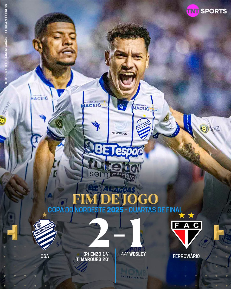 O CSA CONQUISTA VAGA NAS SEMIFINAIS DA LAMPIONS! 🔵 O Azulão do Mutange venceu o Ferroviário com um placar de 2 a 1, garantindo sua classificação para a próxima fase da #CopaDoNordeste2025