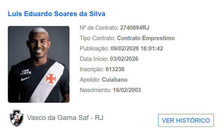Cuiabano teve seu nome registrado no Boletim Informativo Diário da CBF.