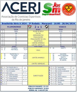 Relatório Completo de Fluminense e Vasco na 3ª Etapa do Campeonato Brasileiro 2024 no Estádio do Maracanã imagem/x acerj