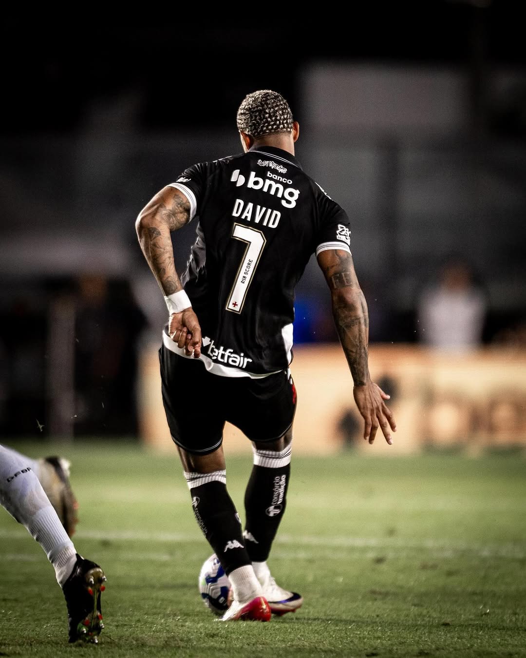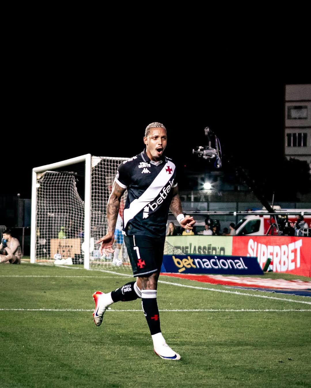 Jogador do Vasco com uniforme preto e detalhes brancos e vermelhos.
