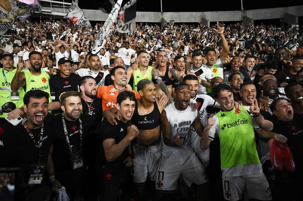 Jogadores do Vasco comemoram com torcida após classificação — Foto: André Durão