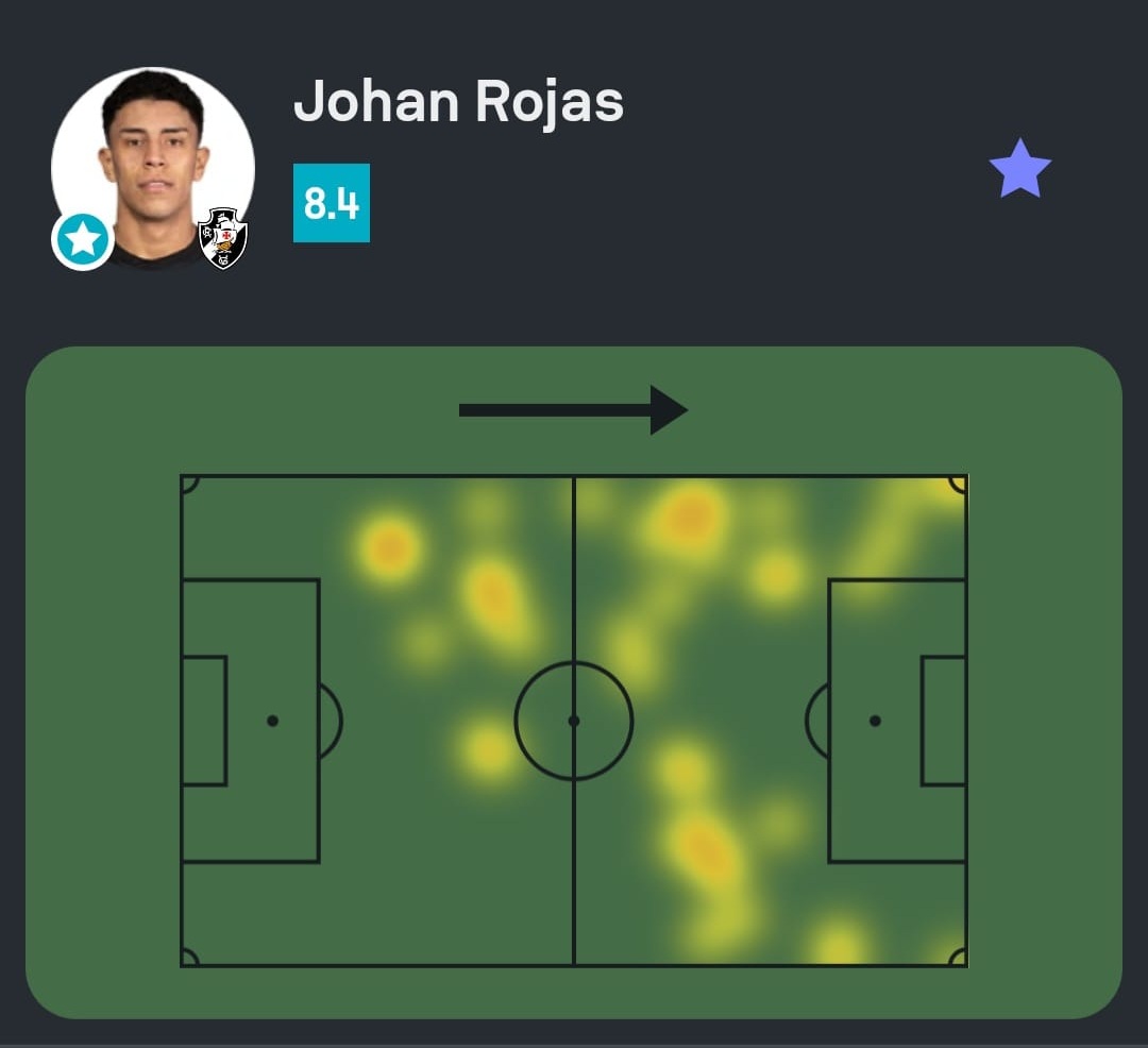 No primeiro tempo, Rojas teve um desempenho notável, com 1 assistência, 1 grande chance criada e 4 passes decisivos, além de ter vencido 2 dos 3 duelos que participou. Ele acertou 3 dos 5 cruzamentos realizados, o que o colocou como o melhor do jogo, recebendo nota 8.4 no Sofascore.