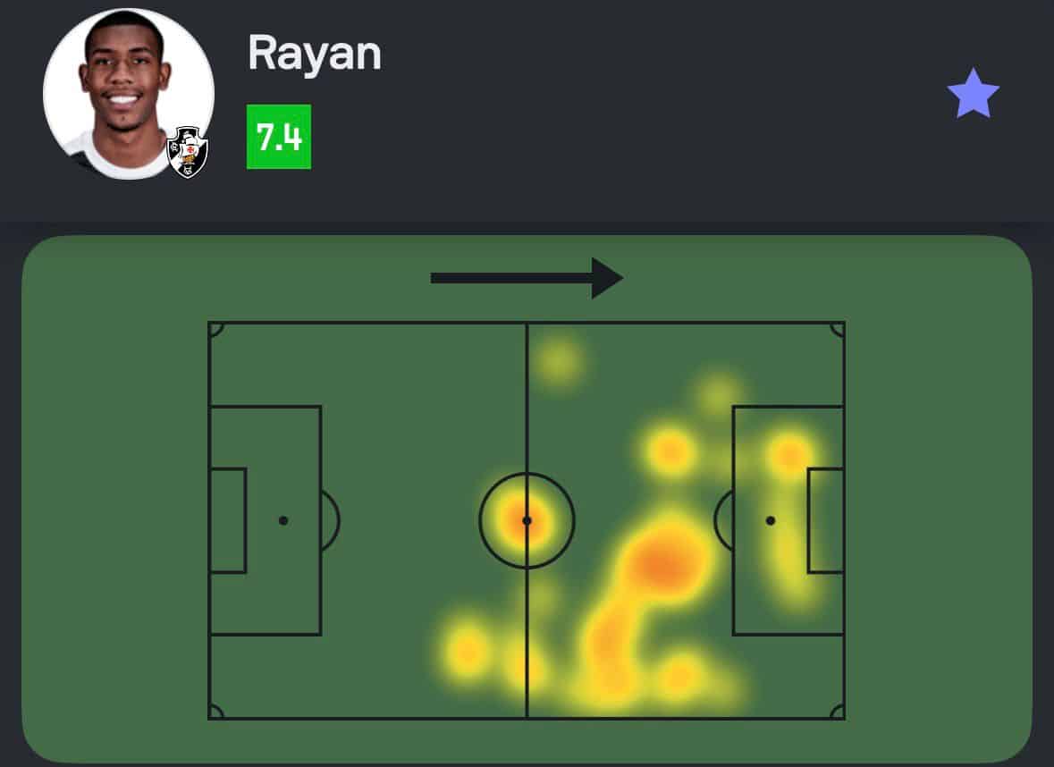 Rayan acertou 23 de 26 passes, alcançando uma impressionante taxa de 88%. Ele também teve 5 finalizações, sendo que uma delas foi ao gol adversário. Além disso, sofreu 4 faltas e venceu 8 dos 14 duelos que participou, culminando em uma nota geral de 7.4 segundo o Sofascore.