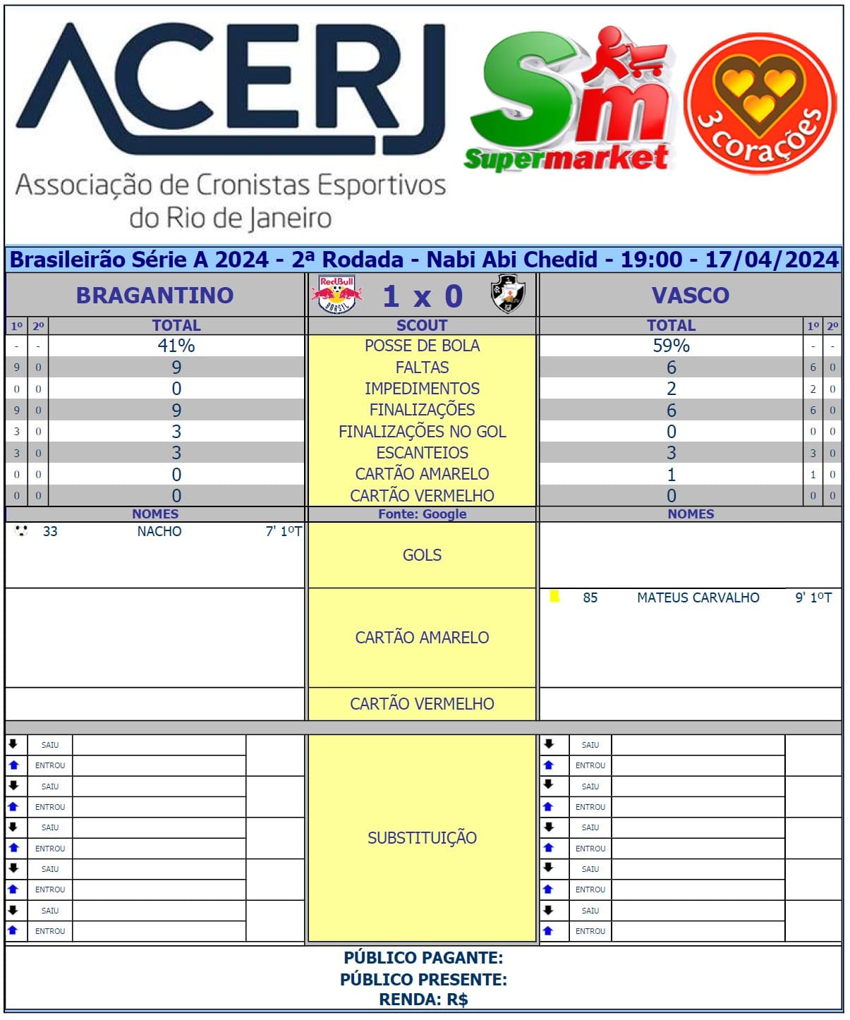 Análise individual dos jogadores no 1º tempo do confronto entre Bragantino e Vasco, válido pela 2ª Rodada do Campeonato Brasileiro 2024 no estádio Nabi Abi Chedid (Dados: Google) #Acerjinforma #brasileirao2024 #RBBxVAS #RedBullBragantino #Vasco