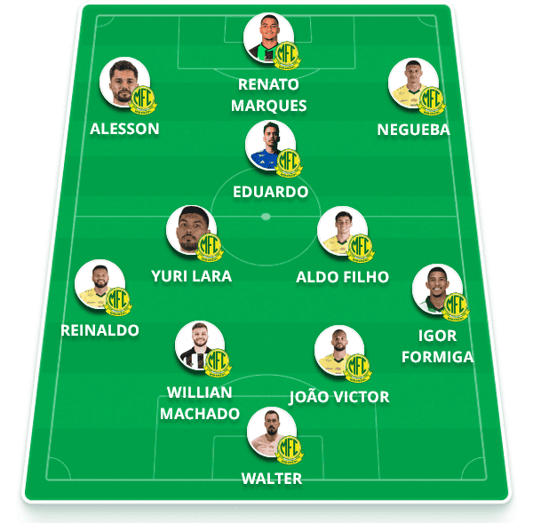 Provável escalação: Walter; Igor Formiga, João Victor, Willian Machado e Reinaldo; Yuri Lara, Aldo Filho e Eduardo; Negueba, Alesson e Renato Marques.