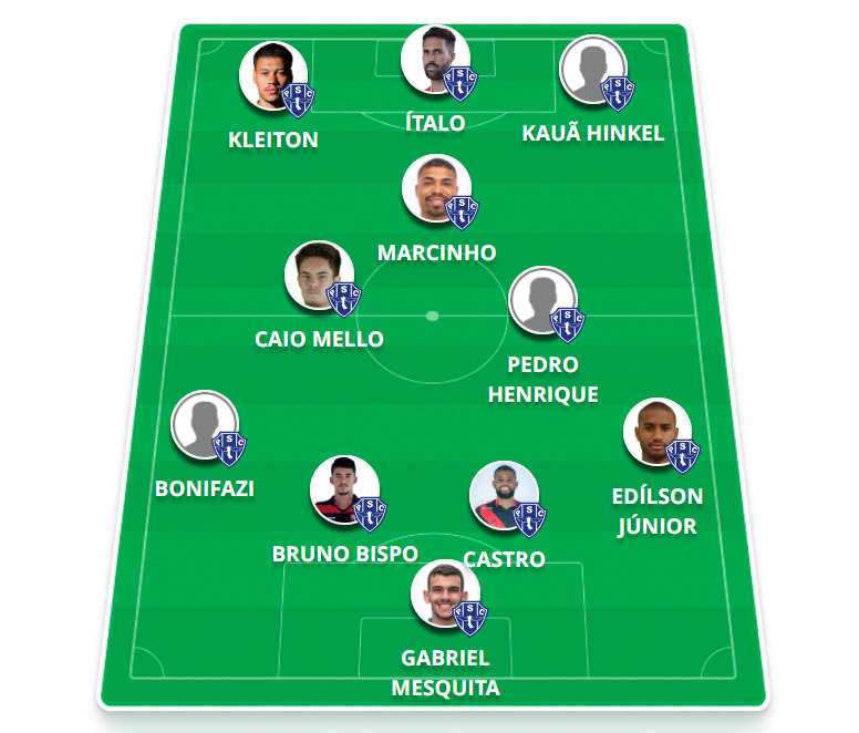 Provável Papão: Gabriel Mesquita; Edilson, Castro, Bruno Bispo e Bonifazi; Pedro Henrique, Caio Mello e Marcinho; Kauã Hinkel (Thayllon), Kleiton Pego e Ítalo Carvalho.