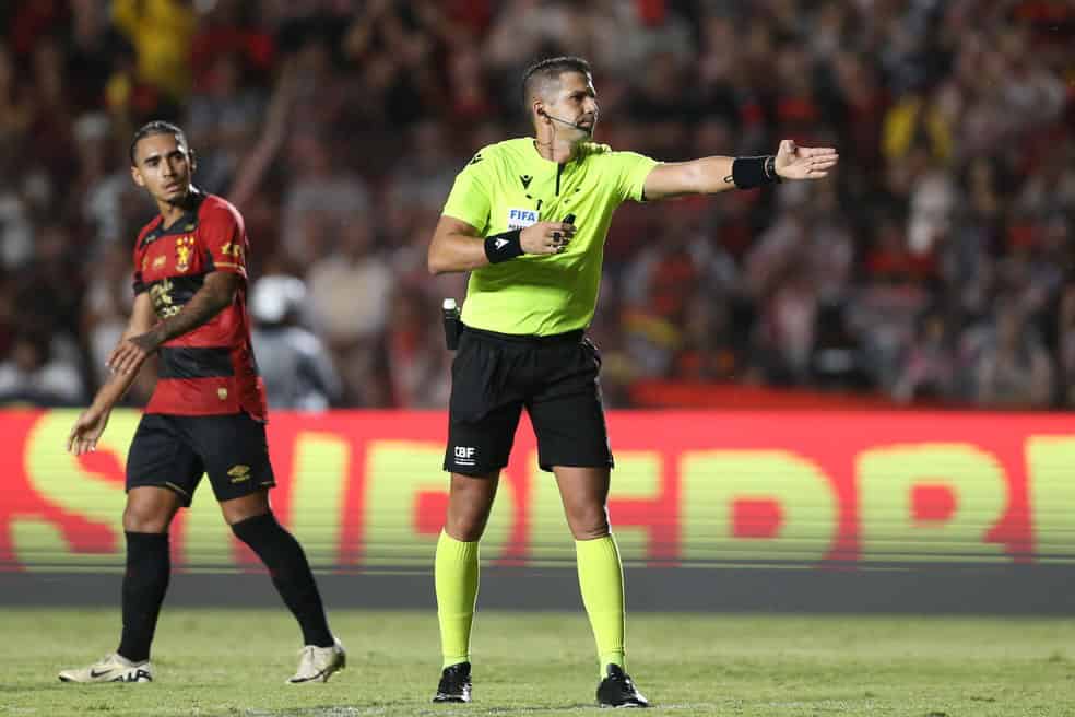 Árbitro Bruno Arleu de Araújo em jogo entre Sport e Palmeiras, pelo Campeonato Brasileiro — Foto: Marlon Costa/AGIF