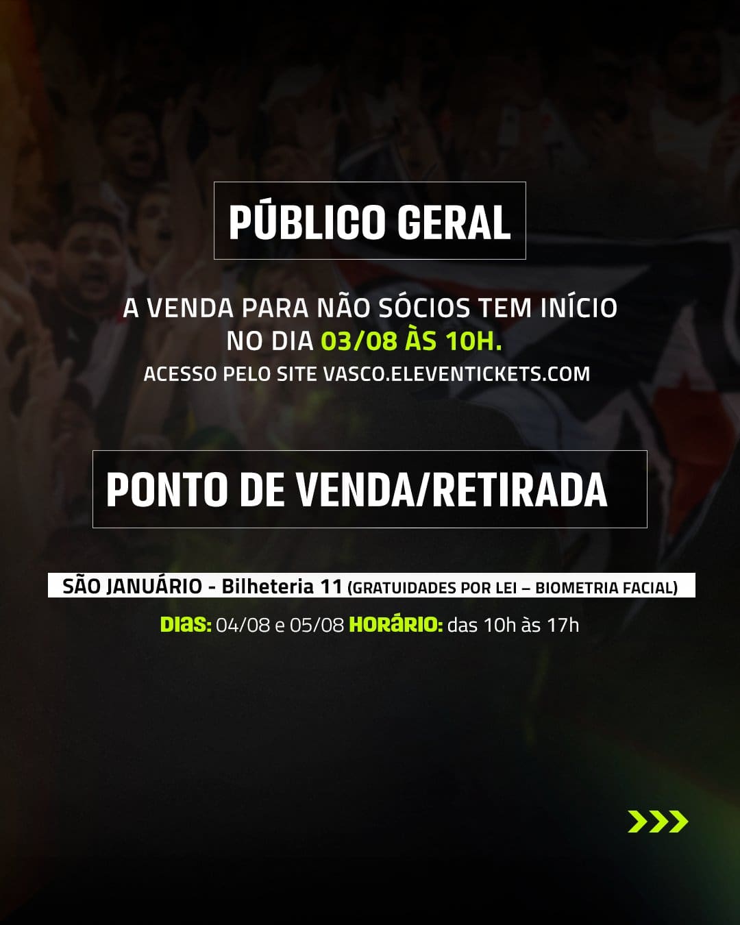 ATENÇÃO! A comercialização dos bilhetes para o duelo entre Vasco e Atlético-GO começa hoje, às 14h.