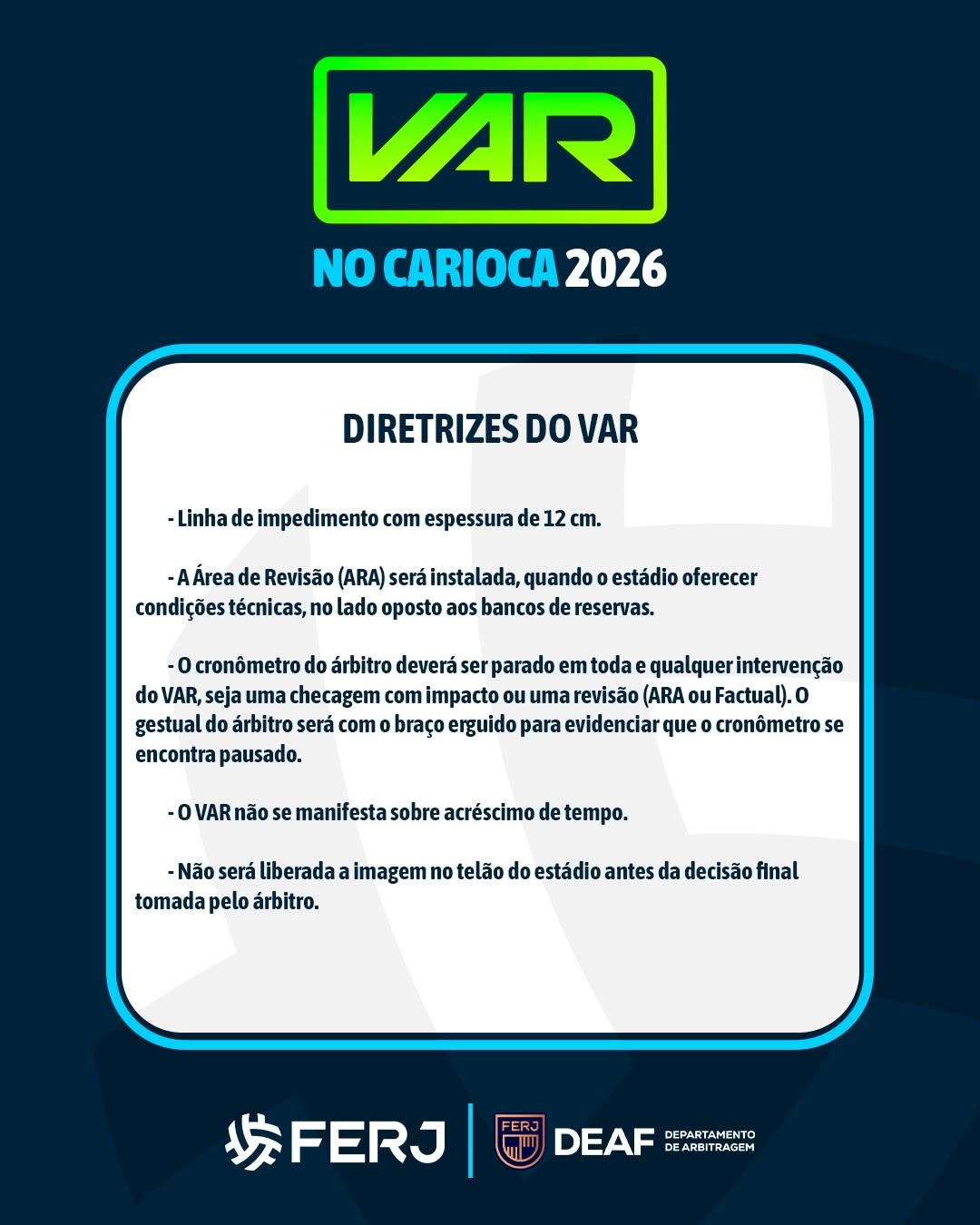 A Ferj divulgou as diretrizes do VAR para o Carioca 2026, visando maior transparência e eficiência nas decisões durante o campeonato.