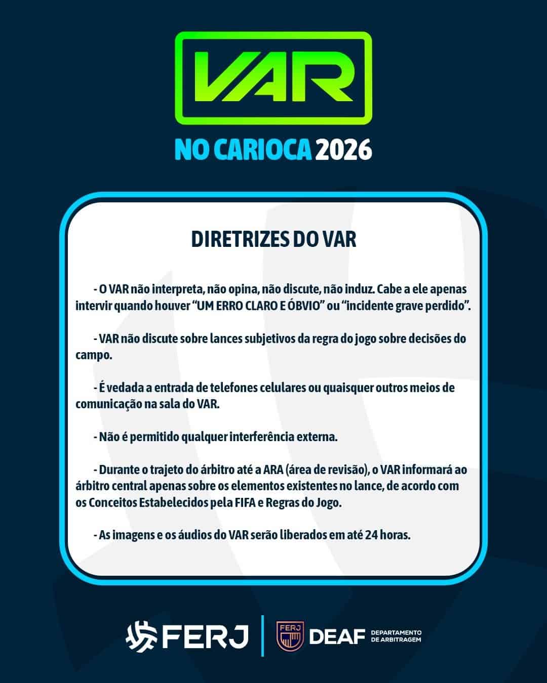 O Campeonato Carioca Superbet 2026 divulga as diretrizes do VAR que serão aplicadas no campeonato estadual mais prestigiado do Brasil.