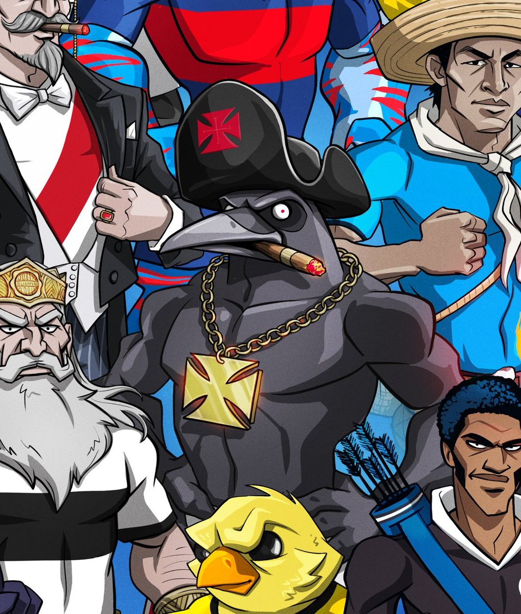 Dom Corvo é destaque em arte da Conmebol com mascotes da Copa Sul-Americana