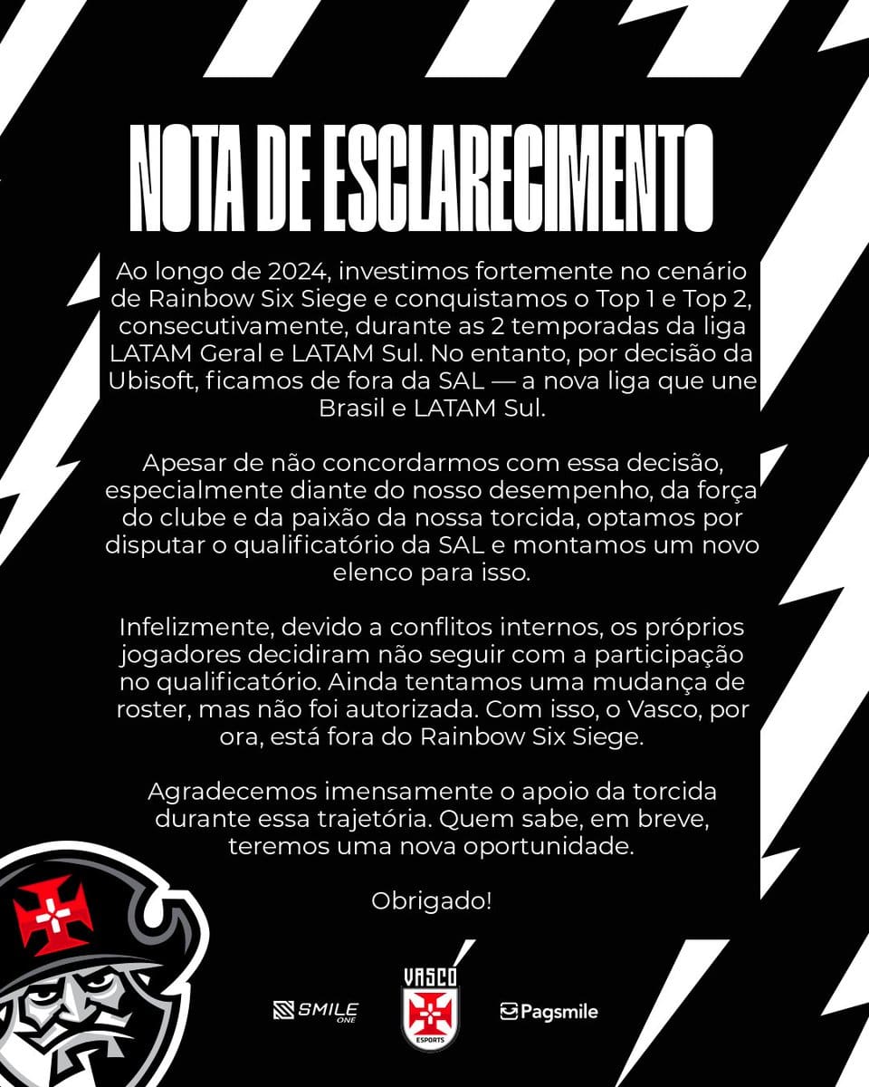 Vasco se despede do Rainbow Six Siege! Confira os momentos marcantes da equipe na competição e o que vem a seguir.