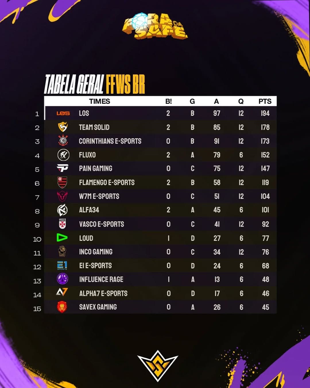 Vasco encerra a 2ª rodada do FFWS BR de Free Fire em 9º lugar! Confira como foi a performance da equipe na competição!
