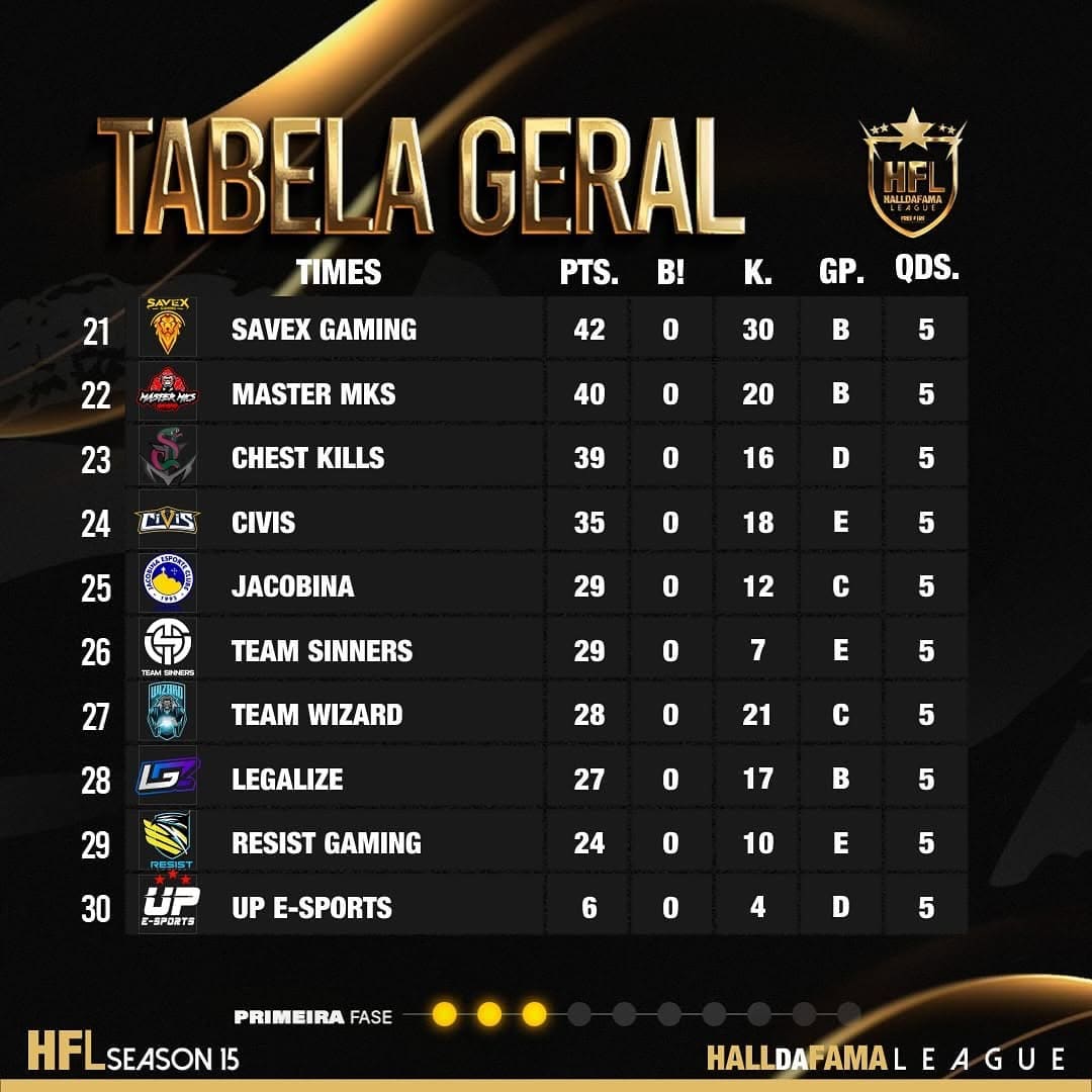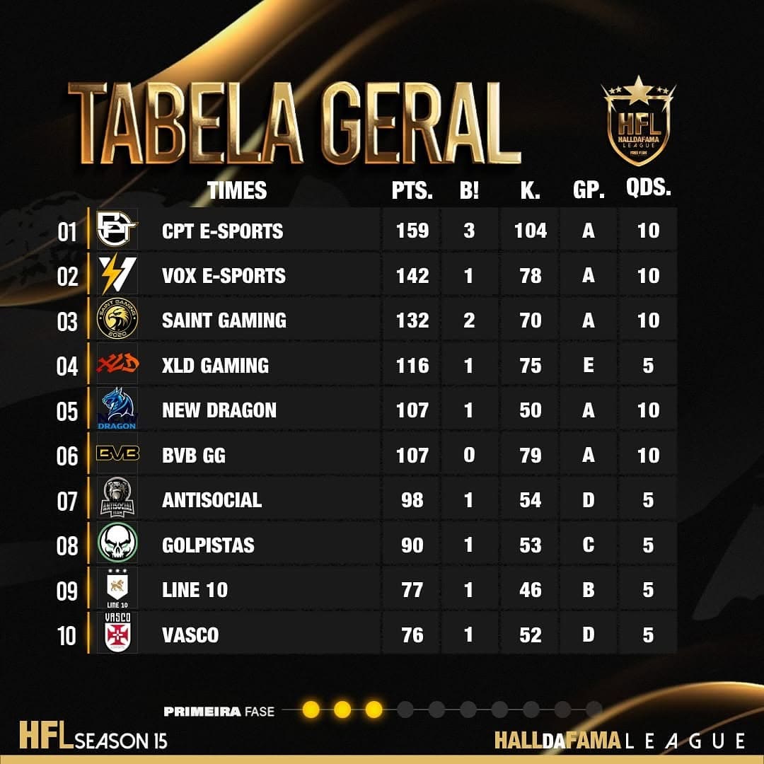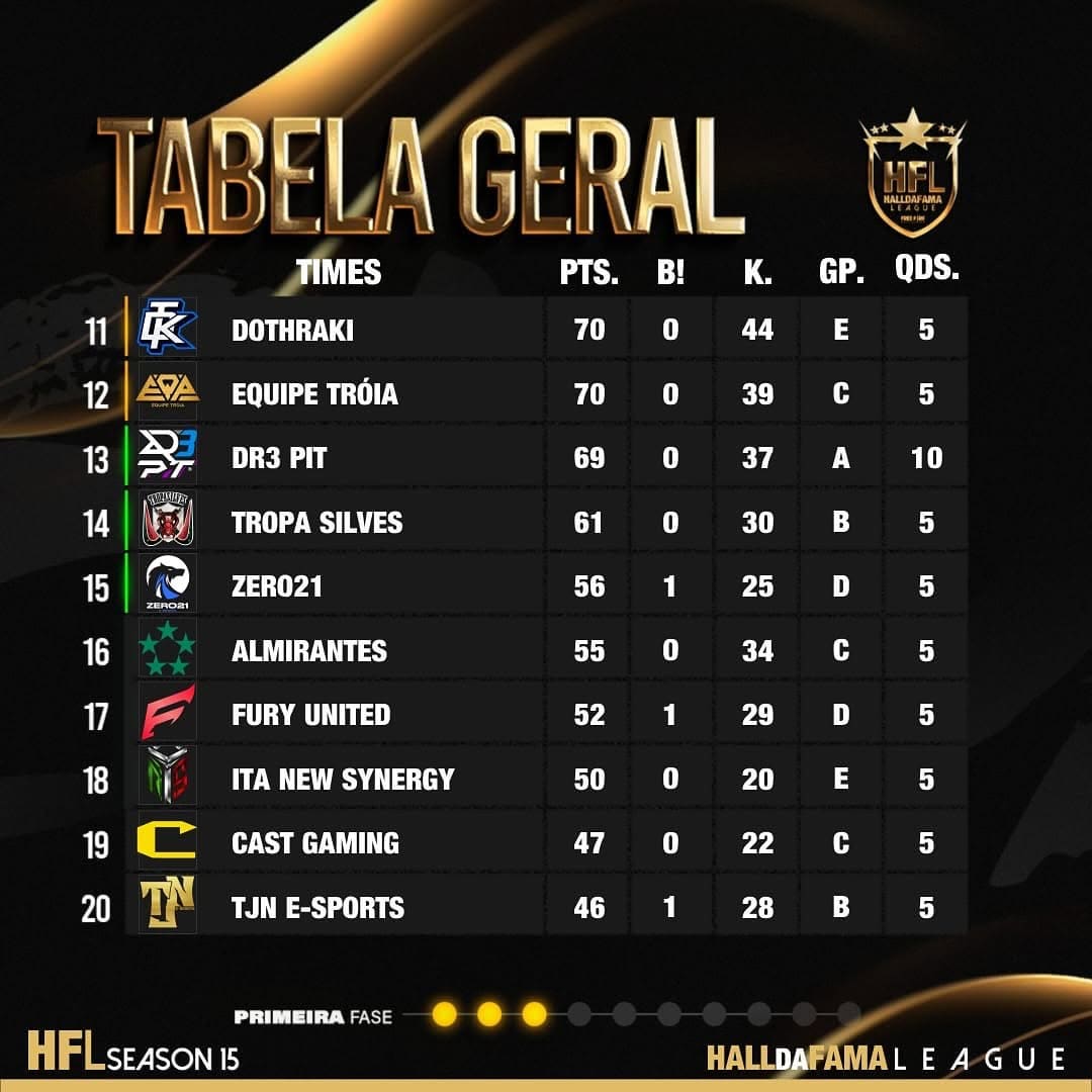 Confira a TABELA da RODADA 3 da FASE CLASSIFICATÓRIA da LIGA HFL SÉRIE A ELITE TEMPORADA 15 🔥🚀
