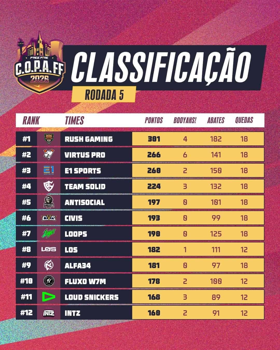 Vasco alcança a 21ª posição na Copa FF de Free Fire.