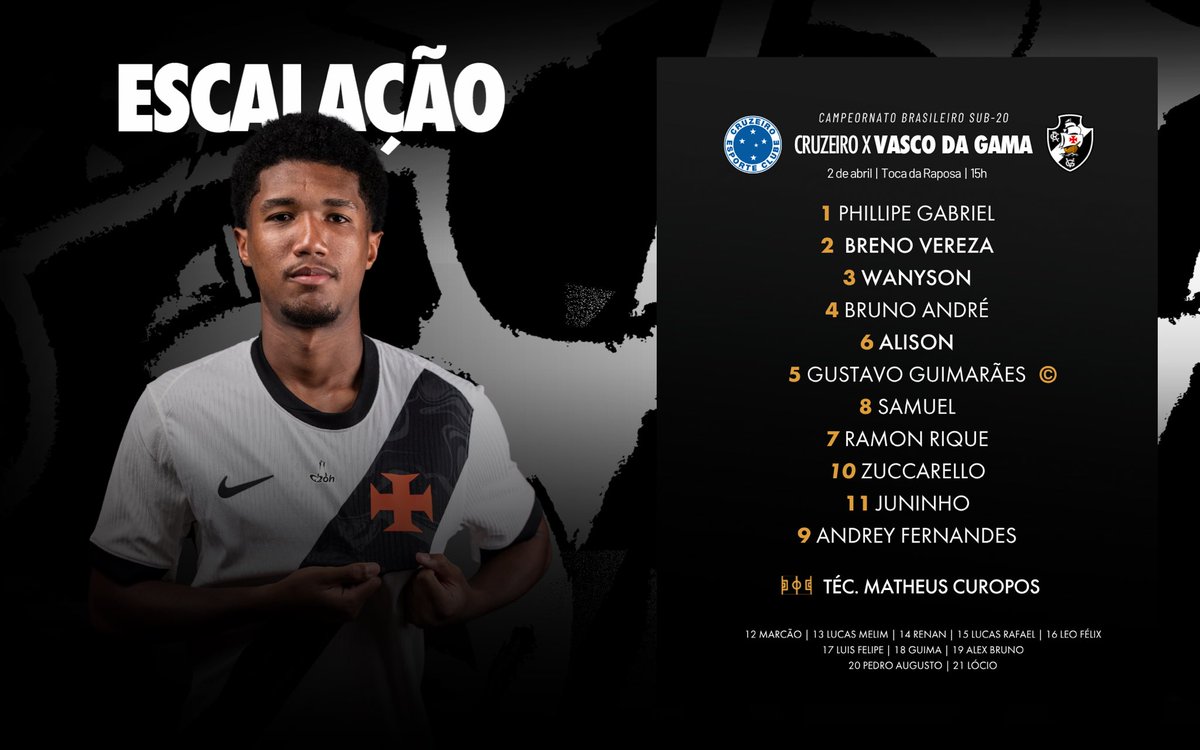O Vasco definiu a escalação para o confronto contra o Cruzeiro no Sub-20.