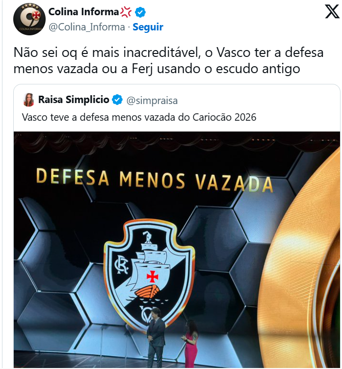 Escudo desatualizado do Vasco é utilizado pela Ferj em premiação do Carioca