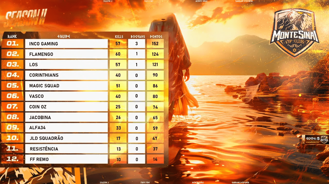 Vasco assegura a sexta colocação no campeonato Monte Sinai de Free Fire.