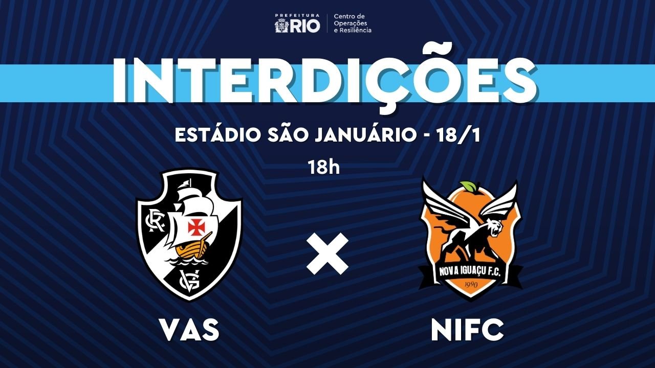 A Prefeitura do Rio, por meio do Centro de Operações e Resiliência (COR-Rio), anunciou um esquema especial de trânsito para o jogo entre Vasco e Nova Iguaçu, que ocorrerá neste domingo (18/1) às 18h, no estádio São Januário, localizado no bairro Vasco da Gama, na Zona Norte. As interdições no trânsito terão início às 12h.