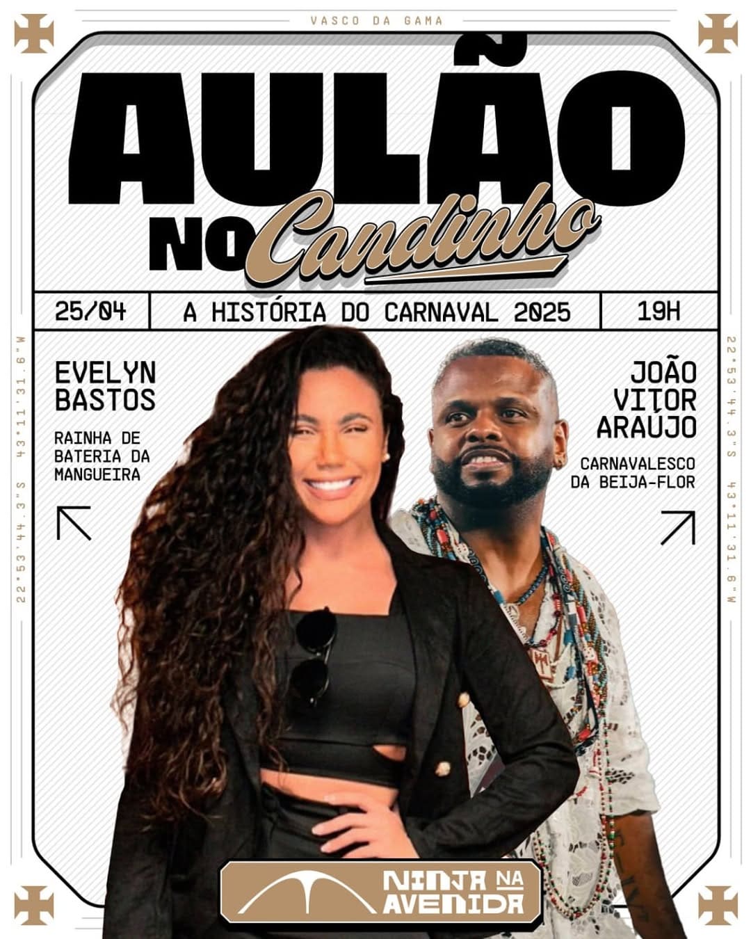 No dia 25/04 às 19h, o Candinho se transforma em uma passarela de ideias com a presença de Evelyn Bastos (Rainha de Bateria da Mangueira) e João Vitor Araújo (carnavalesco campeão da Beija-Flor), em um encontro destinado aos amantes da cultura, resistência e samba no pé.
