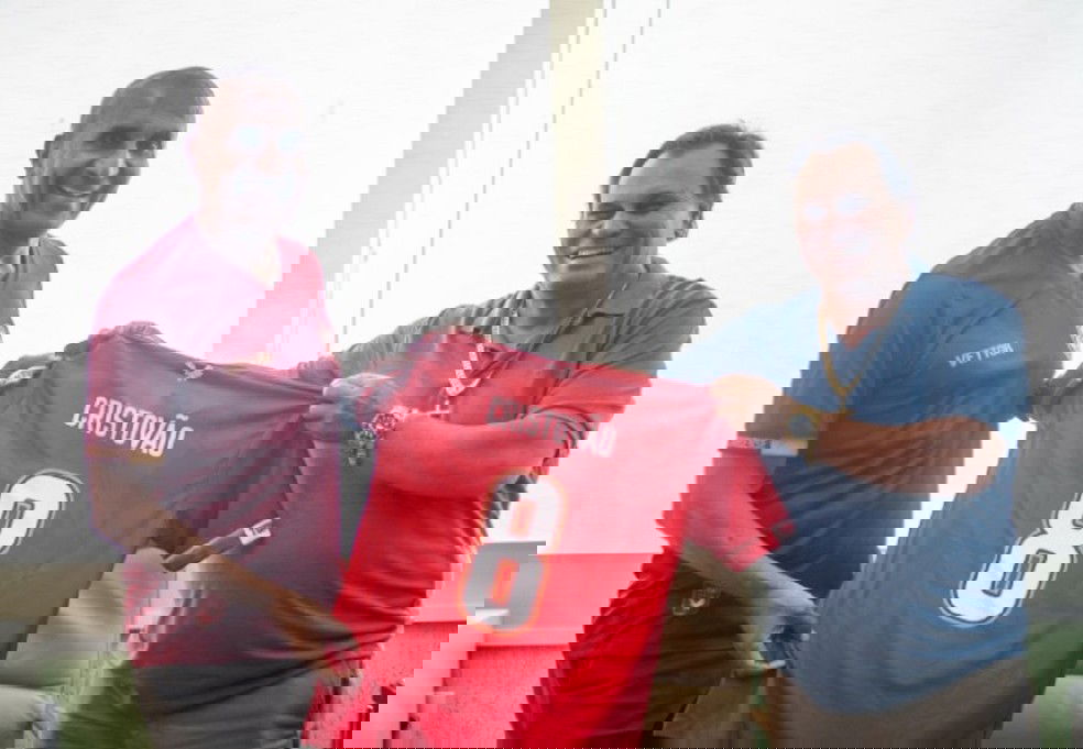 Cristóvão Borges chega ao Tombense e recebe camisa 8 do presidente Lane Gaviolle — Foto: Tombense/Divulgação
