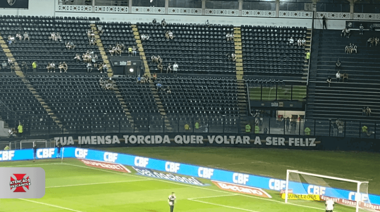 Bandeira de protesto é mostrada nas arquibancadas de São Januário.